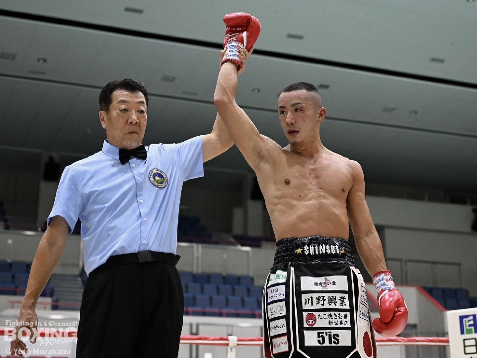 初回、大谷が左フックで顔を弾くと、左右フックを叩きつけて先制。2回以降、大谷は攻め急がず、強弱をつけたジャブでじっくりと新井の体力を削っていった。右クロスを狙った新井だが、決定打を打ち込めず。大谷はジャブに左ボディを織り交ぜてペースを維持し、7回に右アッパーでダウンをゲット。最終8回、大谷はワンツーで効かせると、連打でレフェリーストップに持ち込んだ。