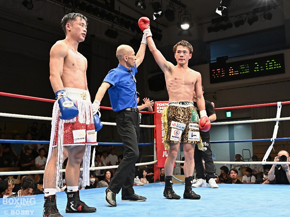 鈴木は上体の柔軟性を活かしながら、ガードとボディワークで相手の攻撃を避けると、3回に右ストレートから左フックをフォローしてダウンを先取。その後は、鈴木がプレスをかけながら、左ボディを突き刺せば、チョはリターンの左フックで応戦。最終8回、逆転を狙うチョは左右フックを叩きつけたが、鈴木は決定打を許さなかった。