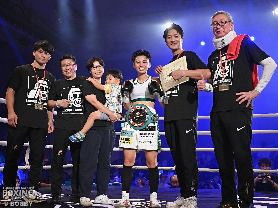「相手のパンチの強さを警戒して、冷静に進めることができた。下を向くのがわかったので、アッパーを狙っていった」とKO劇を冷静に分析した。今後については、「目の前の試合に集中してきたので、この先はまだ未定です]と語った。