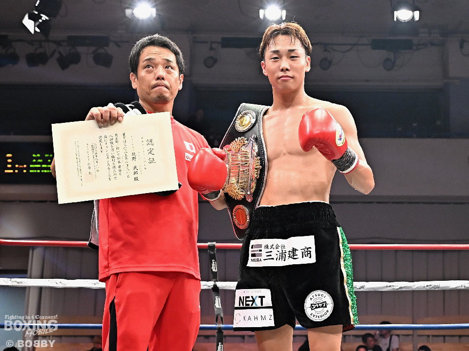 日本ユース・ミニマム級タイトルマッチ、王者の北野武郎(21=大橋)対挑戦者の松本磨宙(23=泉北)が21日、後楽園ホールで開催された「Lemino BOXING フェニックスバトル141」で行われた。