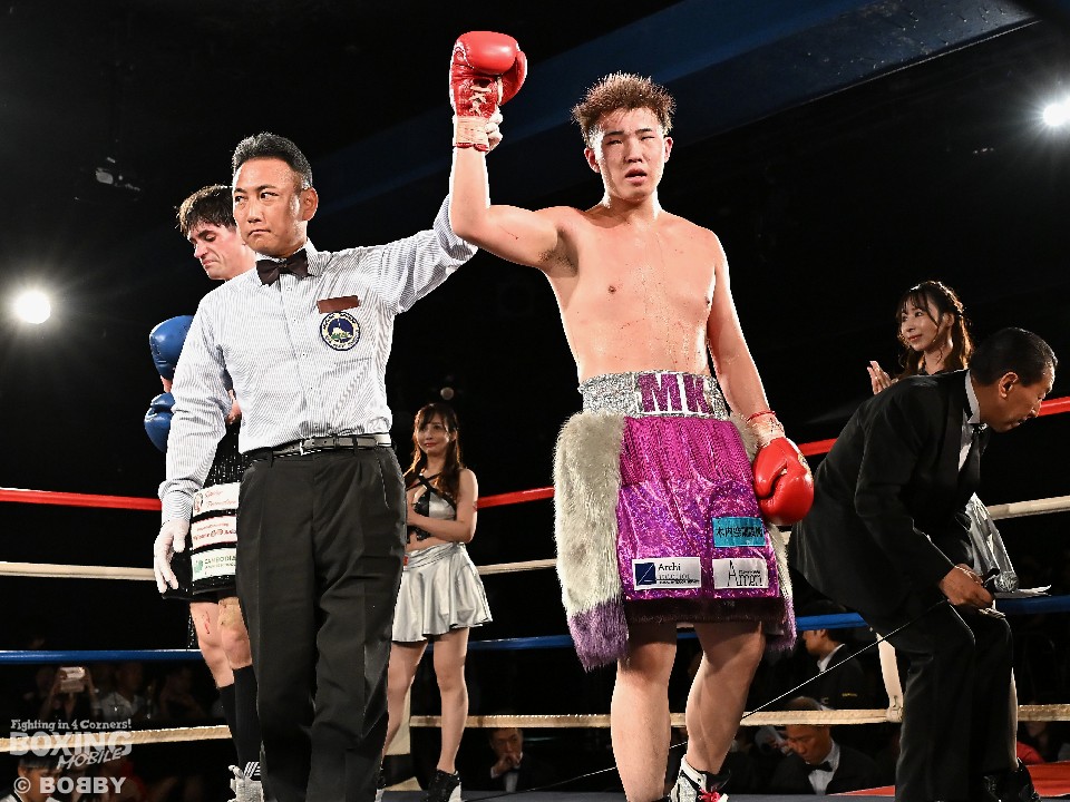 メインイベント、東日本新人王ミドル級4回戦では前OPBF東洋太平洋・WBOアジアパシフィック・ウェルター級王者の佐々木尽の弟、佐々木革(20=八王子中屋)とフランス出身のヘラクレス・メイヤ(24=スパイダー根本)が拳を交えた。