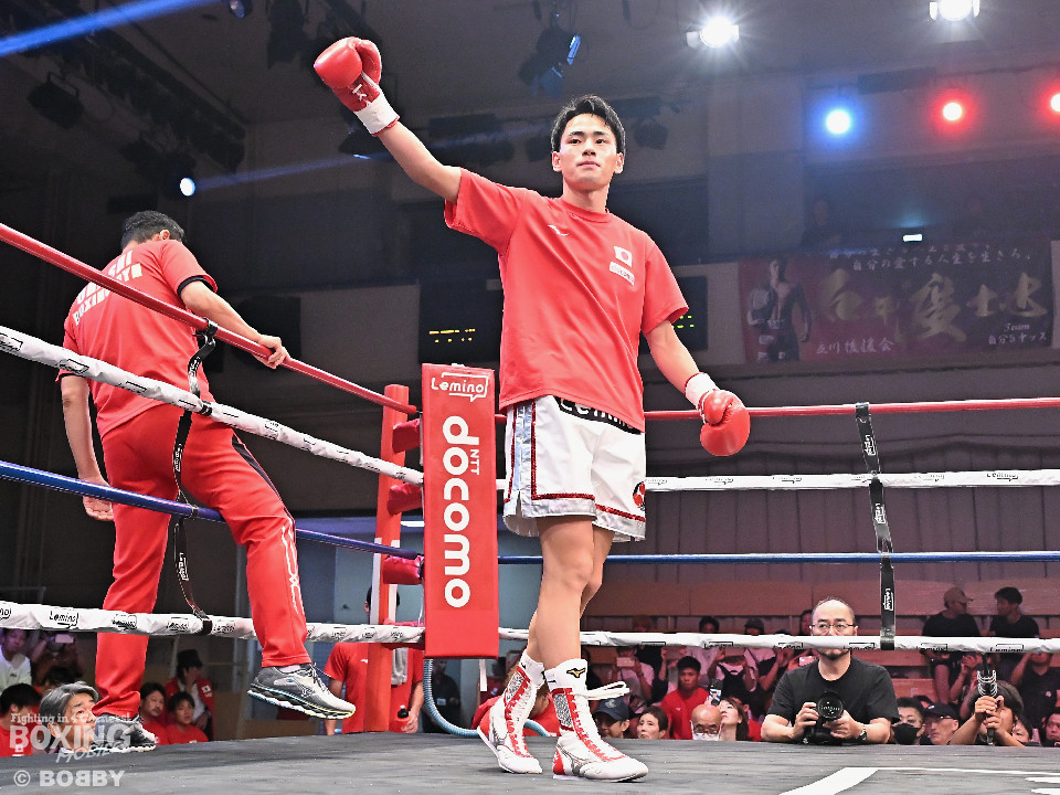 続けて「ジャブで組み立てることを意識して、それが5ラウンド目で結果になった。狙って放ったわけではないパンチが上手くハマった。今日は判定で勝つつもりだったからこそ、冷静に攻めることができた」と、内容に一定の手応えを感じた様子だった。