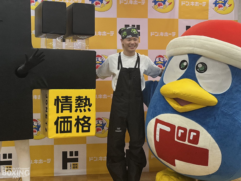 イベントでは、那須川がMEGAドン・キホーテ渋谷本店の“一日店員”として登場。品出しや陳列、接客などに挑戦しながら、ボクサーとしての動体視力、フットワーク、メンタルを“店舗業務”で鍛えるユニークな企画が展開された。