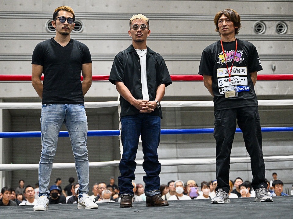 メインイベント前には、DANGAN郡山ジムの鈴木拓也会長とWBA(世界ボクシング協会)休養王者の堤聖也(29=角海老宝石)、日本フェザー級王者の阿部麗也(32=KG大和)がリング上で挨拶した。