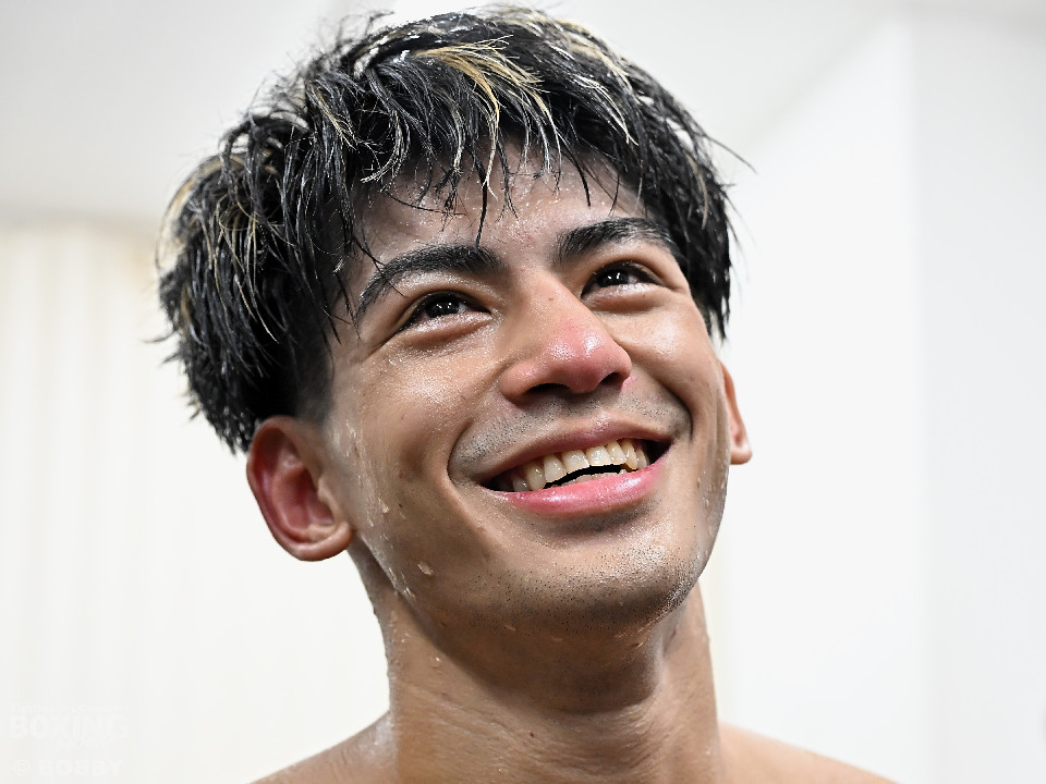 大湾は試合を振り返り、「相手の映像を見て、カウンターが当たりそうだなと思った」と右カウンターの場面を分析。続けて「(ダウン後は)ここで決めるってほどではなかったが、いけたらいこうと。レフェリーが早めにストップしてくれて良かった」と笑顔を見せた。