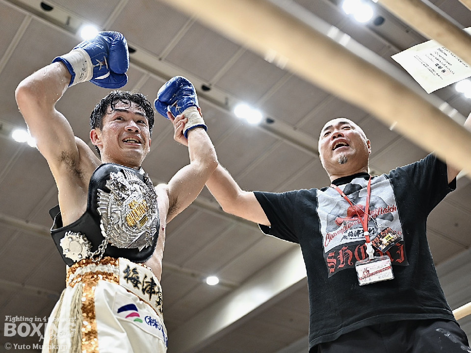 新チャンピオンとなった梅津は、興奮冷めやらぬ表情でこう語った。「ボディを打ったら体が丸まったので、ここがチャンスだと思って仕留めにいった。昨日の計量の時にベルトを見て、歴史の重みを感じた。最高の気分です。勝ってうれし涙を流したのは初めて。会長にここまで育ててもらって感謝しかない」