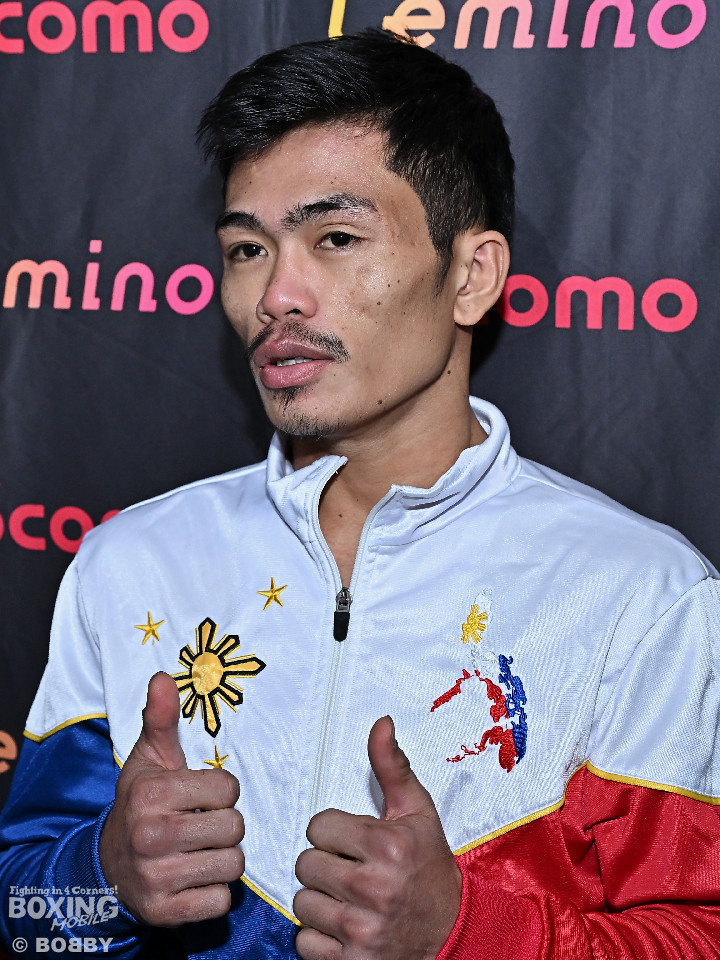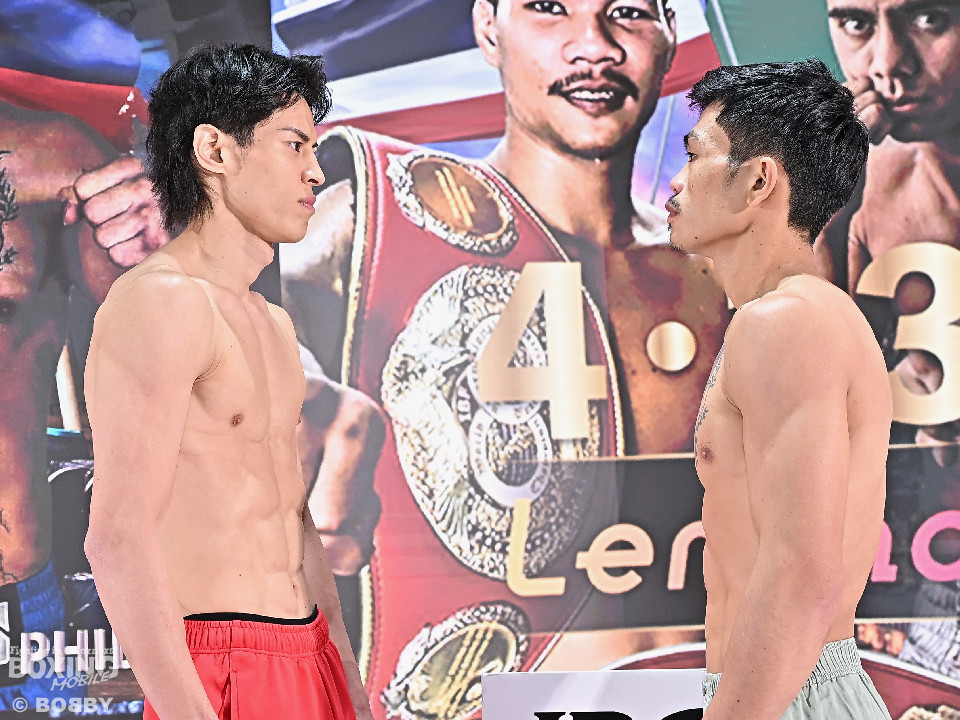 昨年5月の世界初挑戦以来の再起戦に臨む力石政法(31=大橋)が12日、東京ドームシティ内のblue-ing!で、60.0kg契約8回戦で対戦するリト・バデナス(25=比)とともに前日計量に臨んだ。