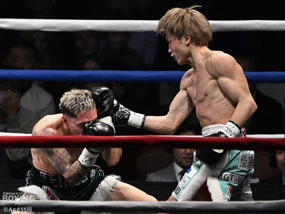 マイクを握った中谷は、「好戦的でパワフルでパンチを振ってくる」と改めてアストロラビオの印象を語ると、「ヒリヒリとした展開を楽しみながら、KOを狙うアクションを起こしていきたい。この先のビッグマッチを期待されるような内容を見せる」と落ち着いた表情で語った。中谷が見据えるのはバンタム級王座統一戦だ。中谷のほかに3人の日本人世界チャンピオンが君臨しているが、「評価が高い選手の一人なので」と、WBA王者の井上拓真(28=大橋)の名前を挙げた。