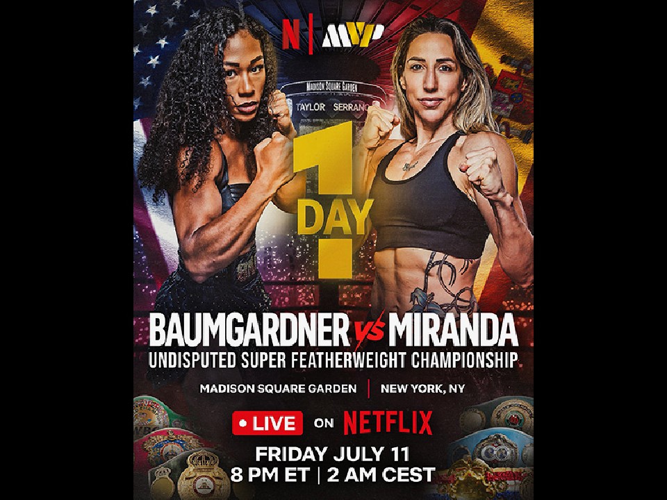 セミファイナルでは、女子世界スーパーフェザー級4冠統一戦が組まれている。4団体統一王者のアリシア・バウムガードナー(31=アメリカ)に対し、元WBA暫定王者で2階級制覇の実績を持つジェニファー・ミランダ(38=スペイン)が挑む。