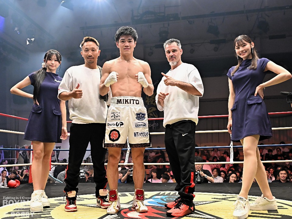 サウスポー中野が上体を動かしながらワンツーを繰り出すと、アグアンは後退。2回、中野はロープに詰めて上下に打ち分けると、アグアンは戦意喪失。陣営が棄権を申し出た。
