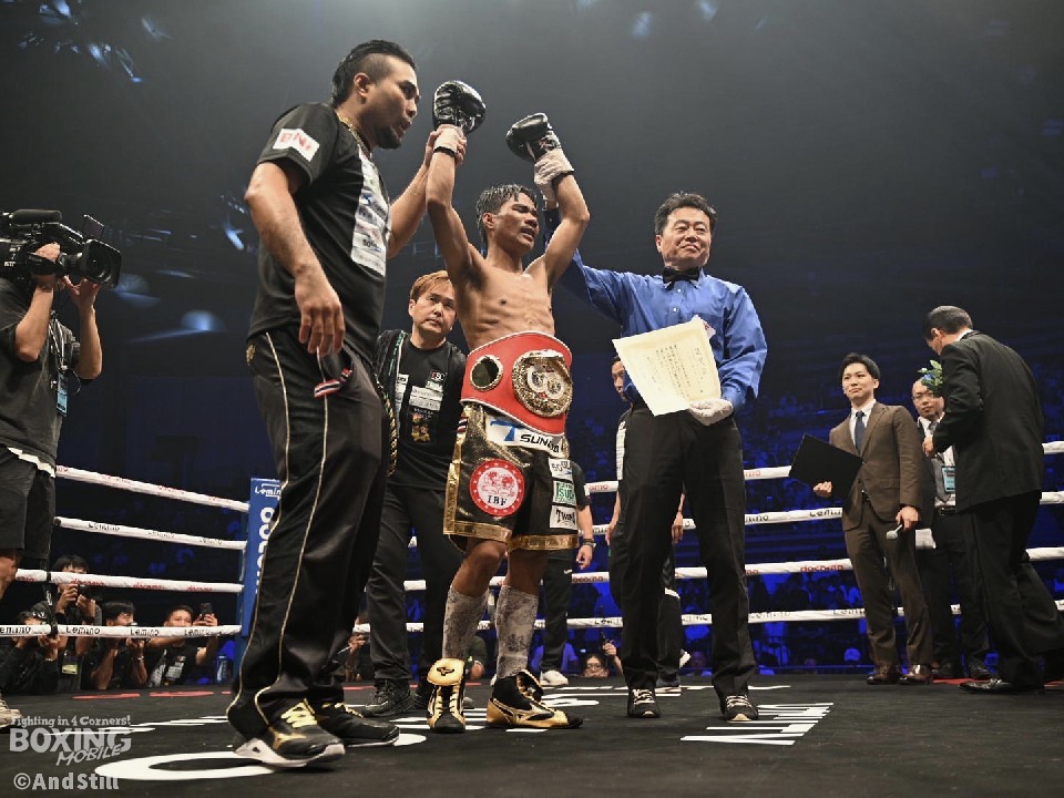 試合後、会見場に現れたタノンサックは、時折言葉を詰まらせながらも穏やかな表情で「試合に勝てて、チャンピオンになれたことを誇りに思います。名前をコールされて、私の手が上がり、本当に嬉しかったです。2日前に亡くなった祖母に、この勝利を捧げたい」と、喜びと祖母への思いを語った。