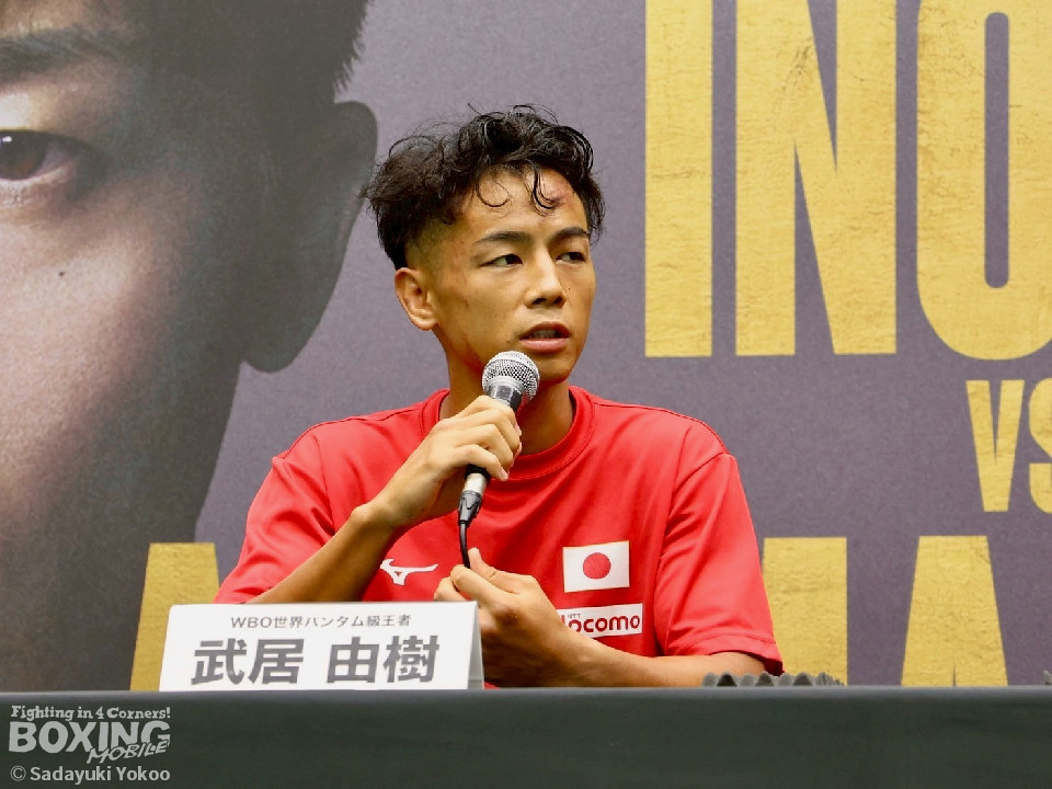 初の敗戦で王座から陥落した武居は、会見場で言葉を絞り出し「ただ悔しい気持ちで、現実を受け入れられない」と肩を落とし、「1ラウンド目のダウンは覚えていなく、最後に止められた時は、まだまだ試合をできたが、止められる流れを作ってしまった自分が悪い」と結果を受け入れた。