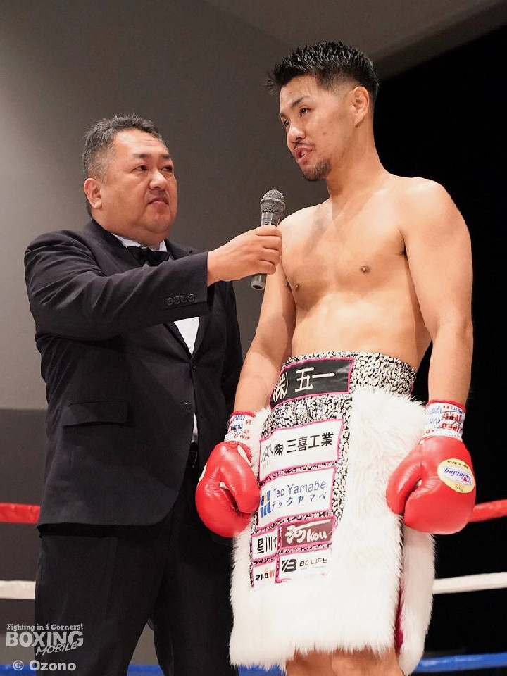 試合後、リング上でフラッシュインタビューに答えた矢野は、アチャリヤの腰を落とした場面を触れ、「ワンツーで相手がビビっていると思ったので、行った」と、勝負を決めた左ボディに繋いだ。「ものすごく練習していたので、気持ちいいです」と大きな手応えを掴んだ。今後に関しては「ダメージもないので、年内にもう1試合したい」と大きな声援に応えた。