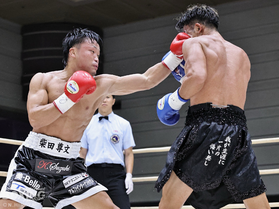 日本ウェルター級6位の柴田尊文(26=グリーンツダ)と元日本ランカーの平安山太樹(38=オキナワ)が11日、エディオンナリーナ大阪(大阪府立体育館第2競技場)で開催された「CRASH BOXING vol.35」のメインイベント、ウェルター級8回戦で対戦した。