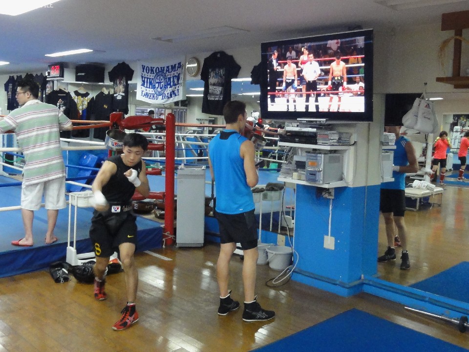 8月21日(金)の後楽園ホールは、ノンタイトル10回戦で行われるスーパーフェザー級の大一番がメインイベント。金子大樹(横浜光)と仲村正男(渥美)の激突。試合まで丁度40日となった11日、金子大樹は所属先の横浜光ジムで仲村正男の試合ビデオを見ながら準備運動していた。