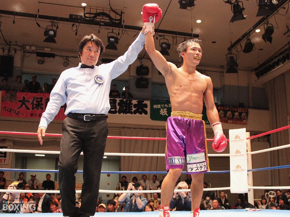 熱戦が続いた25日の後楽園ホール。「DANGAN168Tomorrow's Champion32」のセミファイナルではフライ級8回戦、日本同級1位のユータ松尾(27=国際)と2013年全日本フライ級新人王の大保龍斗(21=横浜さくら)が対戦した。勝てば来年のチャンピオンカーニバルでのタイトル挑戦が濃厚な松尾の戦いに視線が注がれた。
