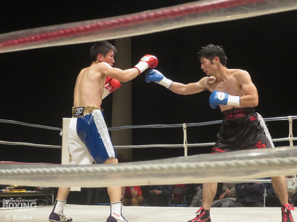 試合はまさにサウスポー同士の意地と意地のぶつかり合いとなった。鯱は左右のボディを主体に右アッパーを狙い、一方の此村は距離を作ってノーモーションの左ストレートを当てた。序盤は此村がペースを握ったが、中盤以降は、手数で優った鯱が追い上げを見せた。試合は三者三様の判定でドロー。