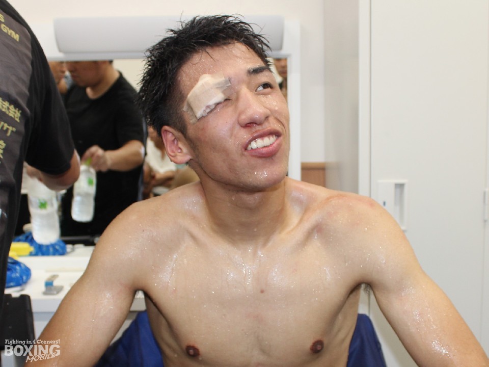 バッティングで初めてカットしたという右目上の治療を済ませて控室に戻ってきた内藤未来は 「相手のジャブは見えていたけど、毎回、一発目を見てしまった」と相手のペースに合わせてボクシングをしたことを課題に挙げた。一方、唯一の収穫としたのはアッパー。下を向いて前に出てきた橘に対して「どのタイミングで打つかを探していた」と試合の後半に下からコンパクトに左を突き上げた場面を振り返った。