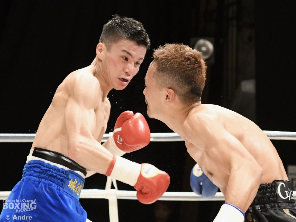 井岡ジムが期待をかける16年度新人王西軍代表の城後響(井岡)が16日、大阪市内のエルシアターで開催された「CHAMPION'S ROAD.64」のメインイベントで再起をかけトリッキー熊谷(T&T)と55.6kg契約8回戦に臨んだ。開始から両者はジャブの差し合いで緊張感のある立ち上がりを見せた。