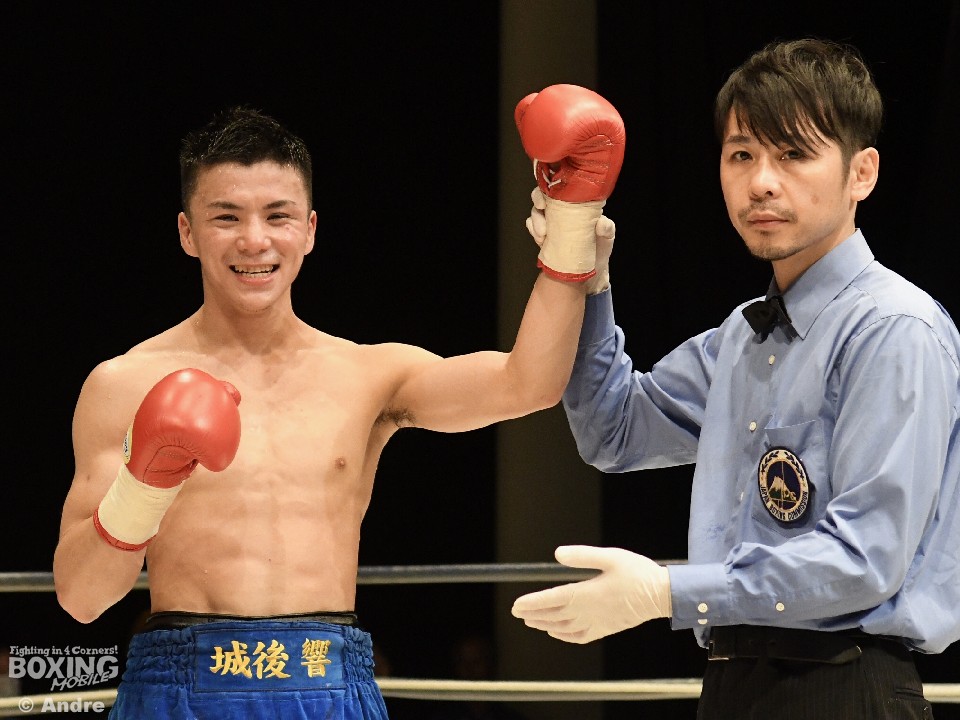 試合後、城後は「前の試合も周りの人には『勝てる』と言われていたし、自分もそう思っていたのに良いのをもらって負けてしまったので、今日は正直ビビりながら、リングに上がりました。この試合が井岡ジム今年、最後の試合やったので、勝てて本当によかったです。来年も頑張ります」と安堵の表情を見せた。