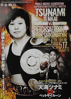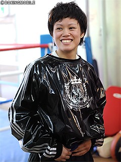 その後、山木会長を伴い会見に応じたツナミ。コンディションは万全と語り、相手のWBA同級ランカー・ペッチサイルーン・ルークサイコンディン(タイ)については「山口直子(東洋王者=白井・具志堅※昨年9月に対戦し山口の3回TKO勝ち)選手と戦ったことは知っているが、ビデオは見たことがない。151cmと小柄なので上手く力を入れるのが難しいが、回転を速くして力の乗ったパンチを当てたい」とコメント。さらに「もちろん戦ってみないとわからないが、女子を盛り上げるためにも2〜3ラウンドまでにはカウンターで倒したい」と、堂々のKO宣言が飛び出した。