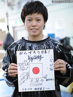 震災以降は、ツナミという名前に非難も受けたそうだが、「名前を変えるつもりはない。被災された方たちのことを忘れないためにも、この名前で戦っていきたい」とツナミ。また「こんな状況でもボクシングができて、ありがたく思う。今回はいつも以上に強い気持ちで戦える。良い試合を見せて、少しでも力になりたい」と意欲を見せた。
