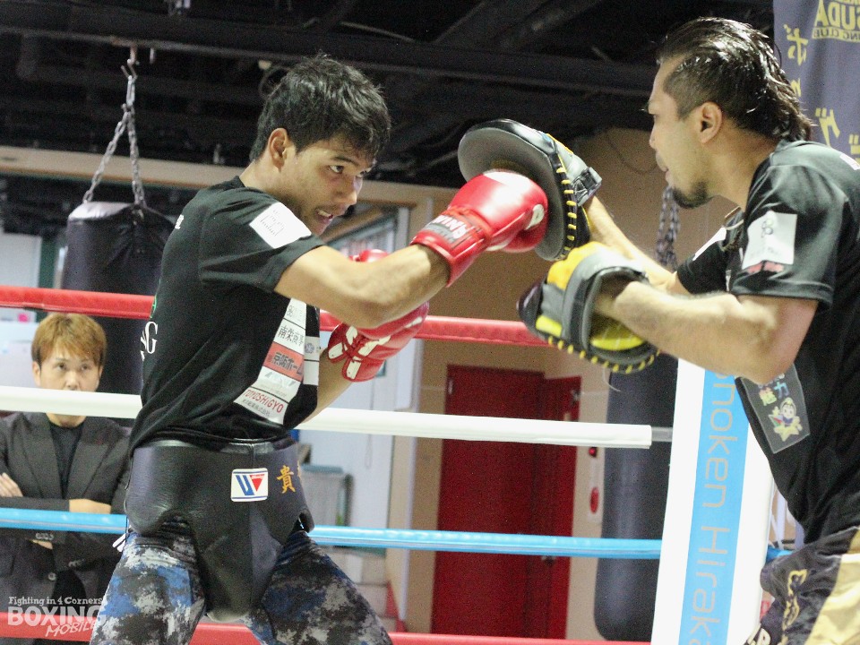 会見後にはスリヤンと2ラウンドのスパーリングを披露。ほぼ左しか出さずパンチを打ち込まない軽めのスパーで手の内を隠した。距離を取りながら前に出てくるスリヤンに左ボディアッパーで迎え撃つと、左のダブルのコンビネーションを見せた。