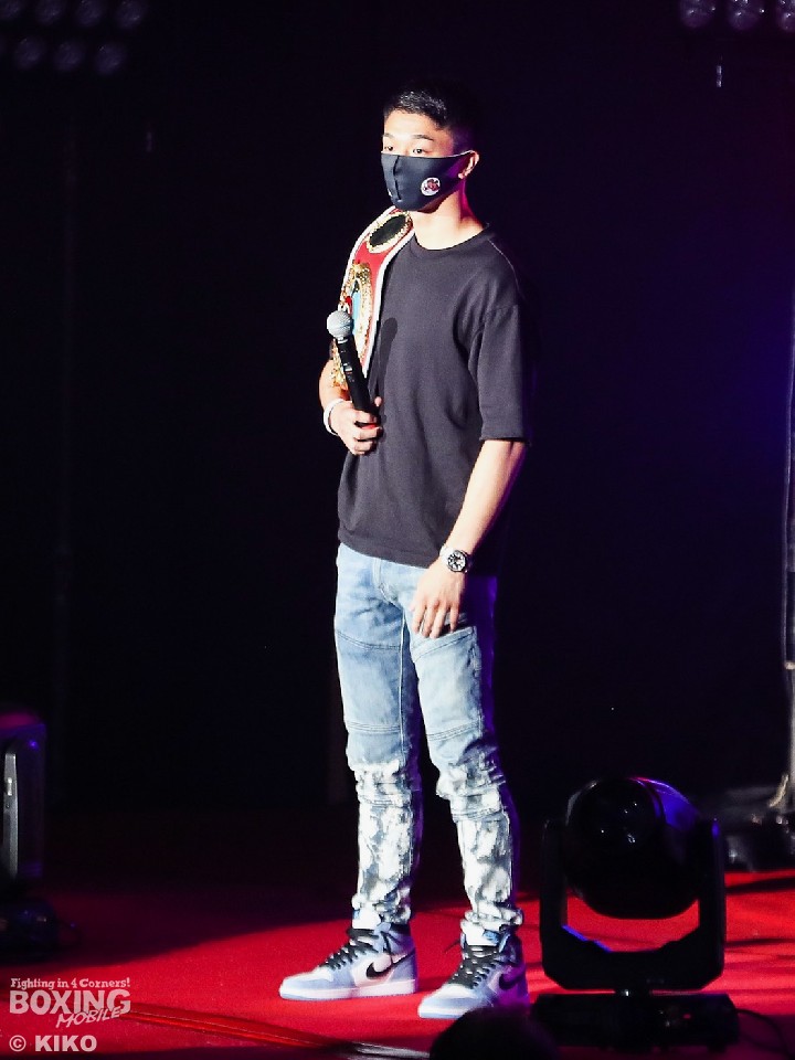 第4試合終了後には、WBO(世界ボクシング機構)フライ級王者の中谷潤人(23=M・T)が紹介され、ステージ上でリングアナウンサーの質問に答えた。