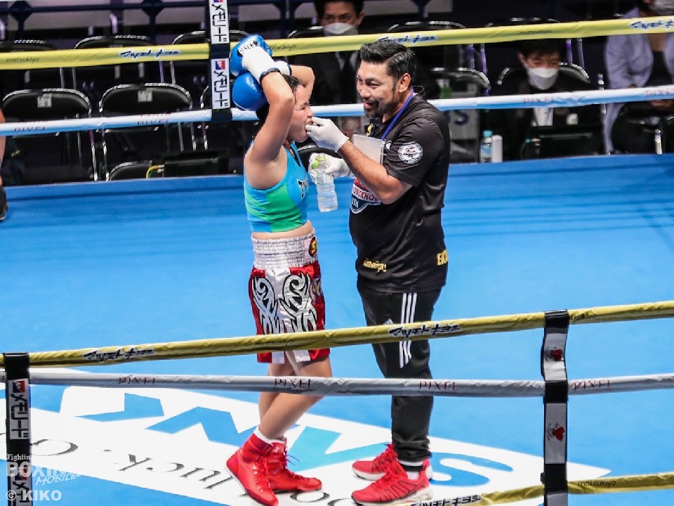 「右をもらいすぎたから、今後はそこに気をつけたい」と課題にも触れた伊藤は、「6ラウンドは倒しに行ったが、下半身との連動が取れず、上手く追えなかった。久しぶりの試合だが感覚はよく、グローブが小さいので動きやすく、自分のボクシングをしていけそう。デビュー戦で勝てたのをきっかけに、今後に繋げていきたい」と、自身のデビュー戦に及第点をつけた。