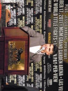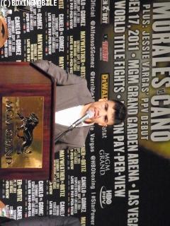 9月17日(日本時間18日)、米国ネバダ州ラスベガスのMGMグランドガーデン・アリーナで拳を交えたビクター・オルティス(米)、フロイド・メイウェザー(米)が試合後、メディアセンターで記者会見を行った。