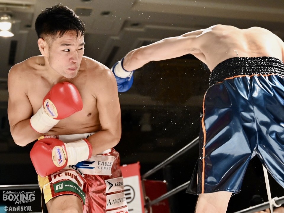 第3試合スーパーフェザー級4回戦では、福井瑛紀(24=畠山)と仲里健太(26=平仲)による、北海道と沖縄のジム所属ボクサー対戦が行われた。開始早々、福井の強打が爆発。左ボディで効かせて、左フックを振り抜きKO勝ち。開始後、わずか31秒で決着をつけた。