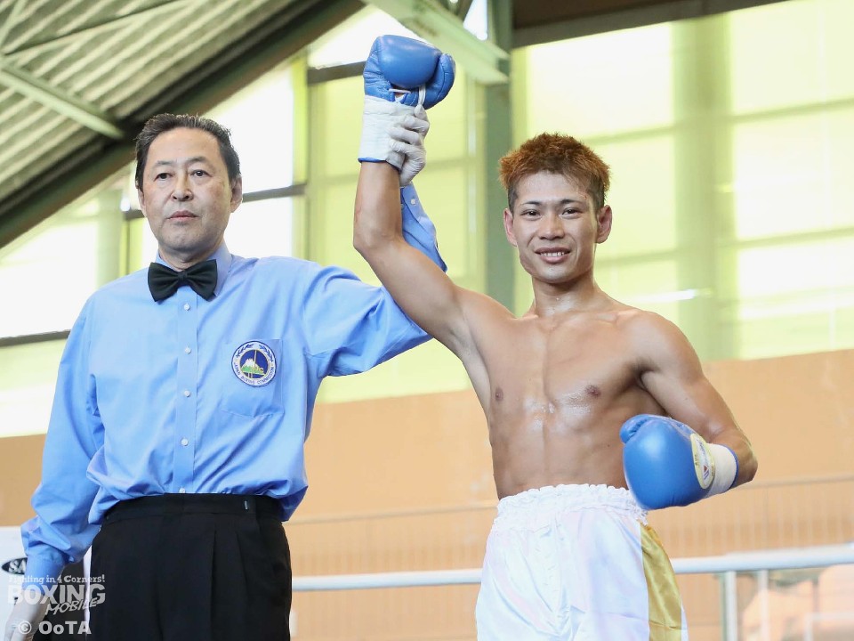 メインイベントのスーパーフライ級4回戦では、小山珠煕斗(19=J中津)と高松翔太(30=冷研鶴崎)が、初勝利を目指して火花を散らした。