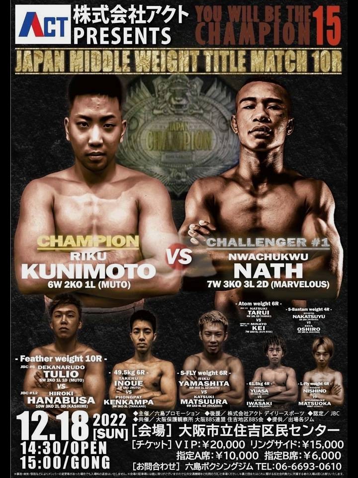 六島ジムで、今月28日正午からラウンドガールのオーディションが行われる。芸能事務所からの売り込みなども含め、10名ほどが参加予定。このオーディションで勝ち上がると、12月18日(日)に住吉区民センターで開催される、株式会社アクトpresents You will be the Champion15のラウンドガールを務める。18日の興行のメインイベントは、日本ミドル級タイトルマッチ。チャンピオンの国本陸(25=六島)がワチュク・ナァツ(25=マーベラス)の挑戦を受ける。