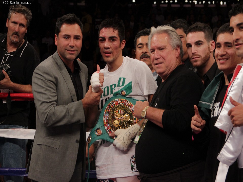 しかし11回、劣勢を悟ったデマルコが反撃。左を浴びたリナレスは後退し、打ち合いに引きずり込まれた。おびただしい出血とパンチによるダメージでリナレスは窮地に。なおもデマルコの攻撃は続き、リナレスは左から右を浴びてロープ際に後退。さらにワンツーがフォローされるとレフェリーが割って入った。