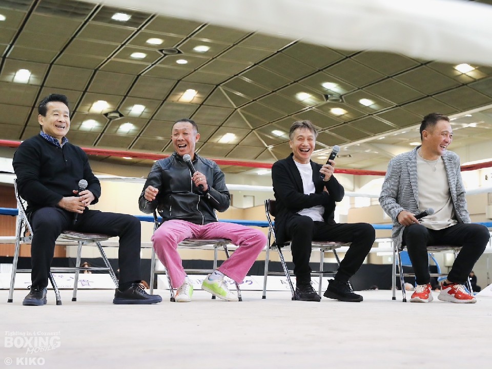 この日は、リング上で「世界チャンピオン四人衆トークショー」が行われ、畑中清氏、渡嘉敷勝男氏、竹原慎二氏、畑山隆則氏が、それぞれの現役時代を振り返りながら、ファイトマネーの話を中心にボクシングの魅力を伝えた。