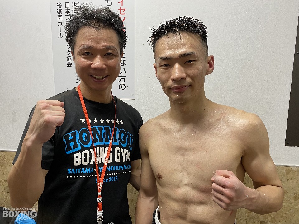 元日本・OPBF東洋太平洋王者で本望ジムの本望信人会長は、「映像で見た時から簡単にはいかない相手だと思っていた。ボディで倒して、最後はよくストップに持っていけた。デビュー戦なので、合格点を与えたい」と語った。