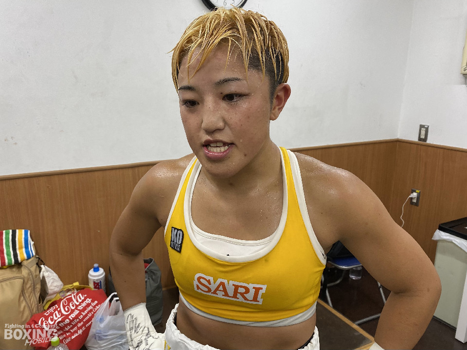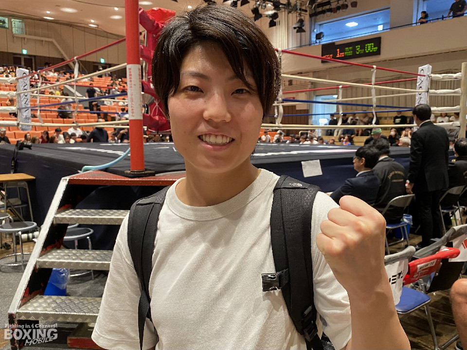 試合後、取材に応じた高倉は、「信じられない気持ち。菜々会長と同じ3戦目でタイトルを獲ることができて本当にうれしい」と、ボクシングを始めた時から二人三脚で歩んできた元世界王者の野上奈々会長の記録に並んだことを喜んだ。(※野上会長は3戦目でOPBF東洋太平洋女子ライトフライ級王座を獲得)