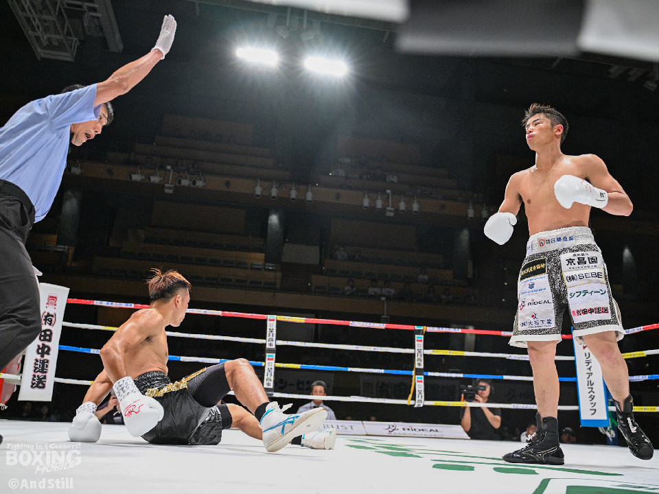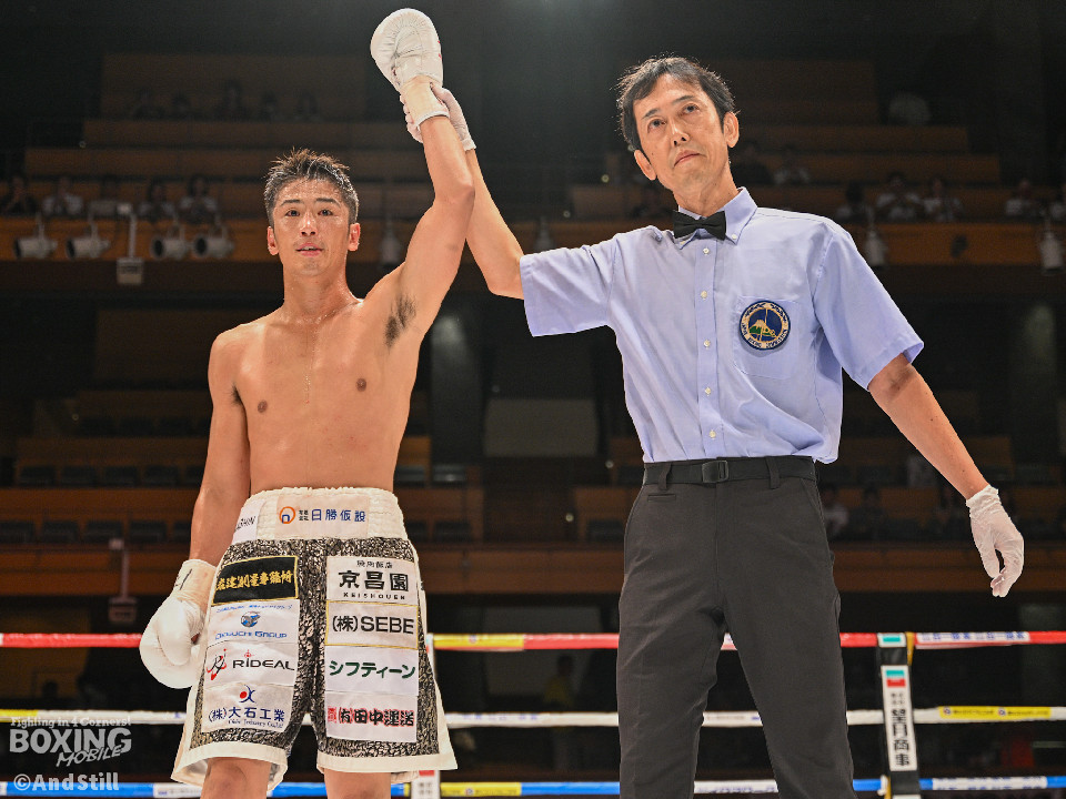 木村は序盤から冷静にジャブとボディ攻撃で主導権を握り、2回には相手の打ち終わりに右を合わせて、ダウンを奪取。4回、圧力を強めて畳みかけると、レフェリーが試合を止めた。