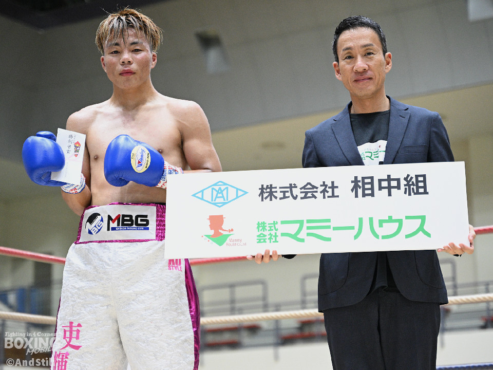 大川悠真(30=升田)は、勝利者インタビューで、「判定が割れてしまった(最終結果を聞くまで)ヒヤヒヤした。ほとんどのボクサーは、仕事しながらボクシングを頑張ってて、(医師の)自分が特別だとは思ってない。でも、みんなに支えてもらっていて、感謝の気持ちでいっぱいです。娘が今月産まれるんですが、妻が減量にも付き合ってくれて、感謝してます。次の目標は、かっこいいパパになることです。4年間、(減量のため)ケーキとかも食べられなかったが、(支えてくれて)ありがとう」と、愛妻家のパパの顔に戻っていた。