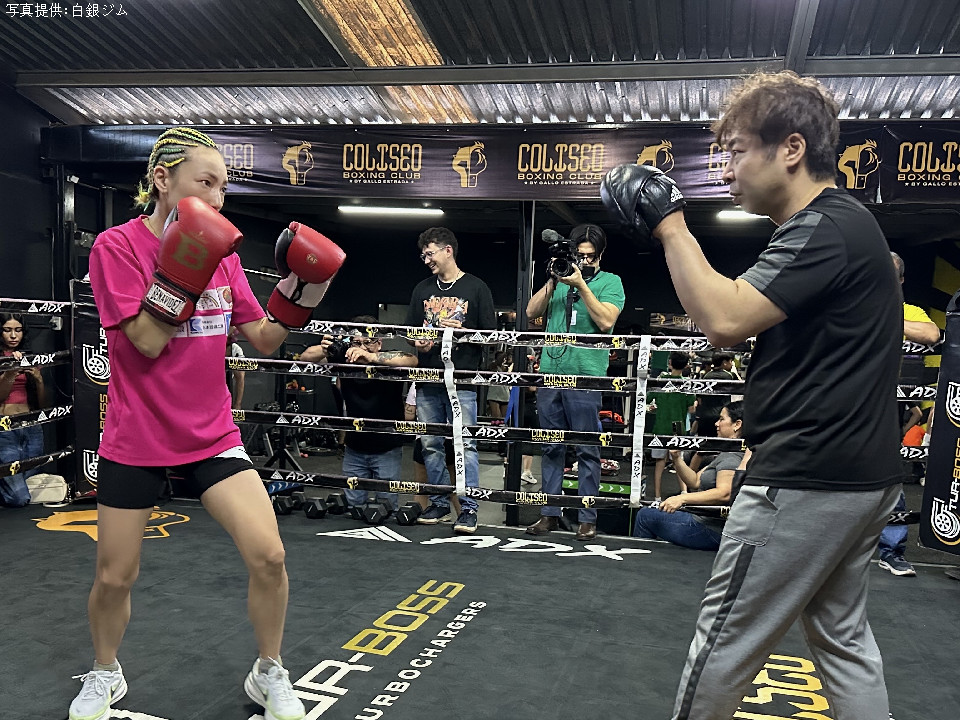 WBC世界アトム級タイトルマッチに臨む葉月さな(41=白銀)が23日、試合地メキシコ・エルモージョのコリセオ・ボクシングクラブで公開練習を行った。