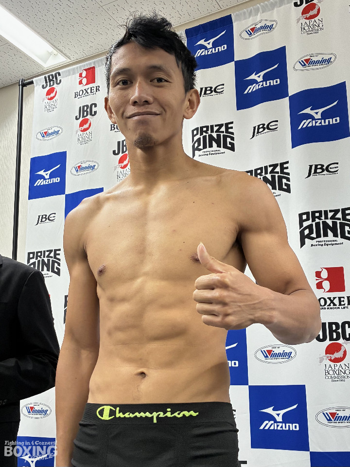 一方、4度目の来日となるカルコシアは300gアンダーの59.5kgでクリア。世界ランカーとの対戦に静かに闘志を燃やしていた。