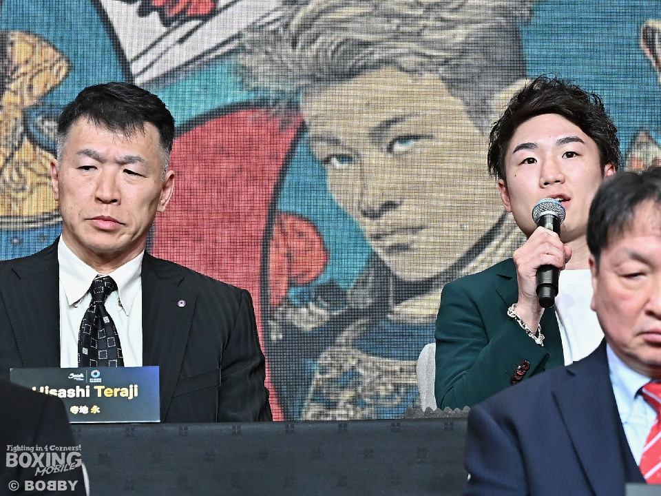サウジアラビアの首都リヤドで開催される「THE RING V : NIGHT OF THE SAMURAI」の発表会見で7日、IBF(国際ボクシング連盟)スーパーフライ級王者のウィリバリド・ガルシア・ペレス(35=メキシコ)に挑戦する寺地拳四朗(33=BMB)が、世界3階級制覇に向けて意気込みを語った。