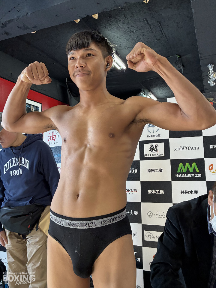 一方、44戦目となるアタノンは、リミットより900g軽い58.0kgで計量をクリア。「緊張せずにしっかり戦い、勝ってタイに帰るつもりだ」とリベンジを誓った。