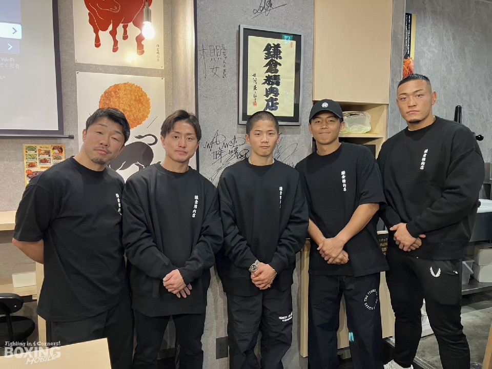 WBA世界バンタム級3位の武居由樹(29=大橋)が9日、元世界3階級制覇王者の八重樫東トレーナー、ジムの後輩であるOPBFミニマム級王者・石井武志(26=大橋)、星龍之介(27=大橋)らとともに、鎌倉駅前の肉バル「鎌倉精肉店」で1日店長を務めた。