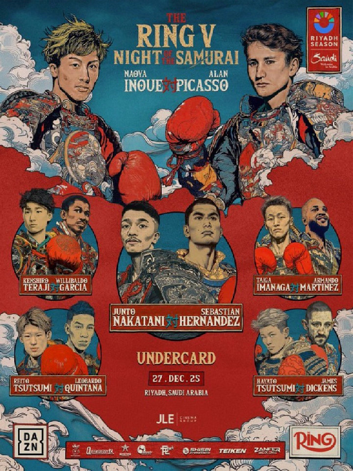 12月27日(土)にサウジアラビア・リヤドで開催される世界ボクシングイベント「THE RING V NIGHT OF THE SAMURAI」に、井上尚弥(32=大橋)をはじめ中谷潤人(27=M.T)寺地拳四朗(33=BMB)ら日本人トップ選手らが出場予定。
