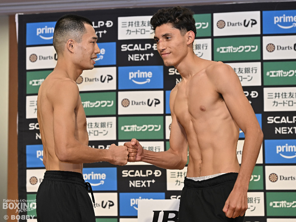 WBA(世界ボクシング協会)バンタム級4位の増田陸(28=帝拳)とWBC(世界ボクシング評議会)同級15位のホセ・カルデロン(22=メキシコ)が23日、東京ドームホテルで前日計量に臨んだ。
