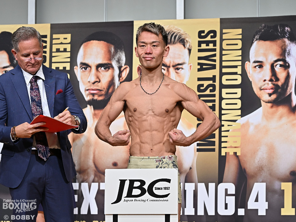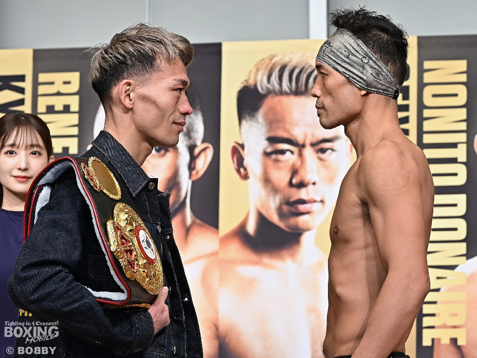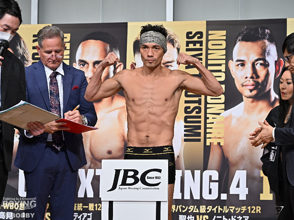 WBA(世界ボクシング協会)世界バンタム級正規王者の堤聖也(29=角海老宝石)と暫定王者のノニト・ドネア(43=比/米)が16日、東京ドームホテルでWBA世界王座統一戦の前日計量に臨んだ。両者は東京・両国国技館で開催される「U-NEXT BOXING 4」のメインイベントで対戦する。