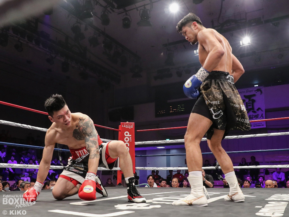 日本人最速タイ記録となるプロ2戦目でのタイトル挑戦。森脇は初回からスピードを活かした攻撃で主導権を握り、右カウンター一閃。王者からダウンを奪い、会場をどよめかせた。