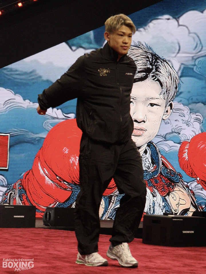 公開練習前の囲み取材で堤は、「順調に仕上がっている。明日は練習せずに体重調整に集中したい」とコンディションの良さを強調。プロ4戦目で初めて日本人選手と同じ興行に出場することについては、「特別に意識はしていないが、新鮮な気持ちはある。良い試合をしてインパクトを残したい」と意気込みを語った。