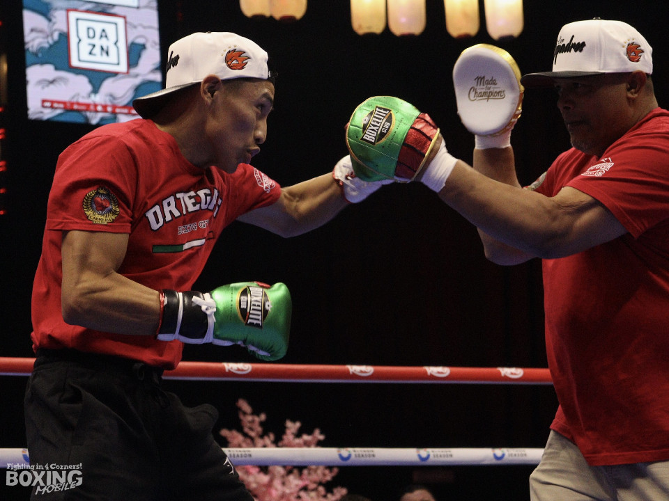 一方、対戦相手のキンタナも公開練習でミット打ちを披露。応援団の「メヒコ」コールが響く中、左のダブルを軸にしたコンビネーションで存在感を示した。